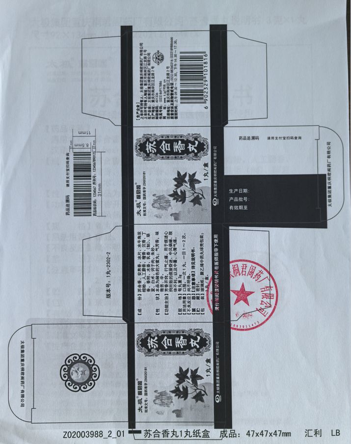 | 主要成分 | 苏合香、安息香、冰片、水牛角浓缩粉、人工麝香、檀香、沉香、丁香、香附、木香、乳香(制)、荜茇、白术、诃子肉、朱砂。、 |