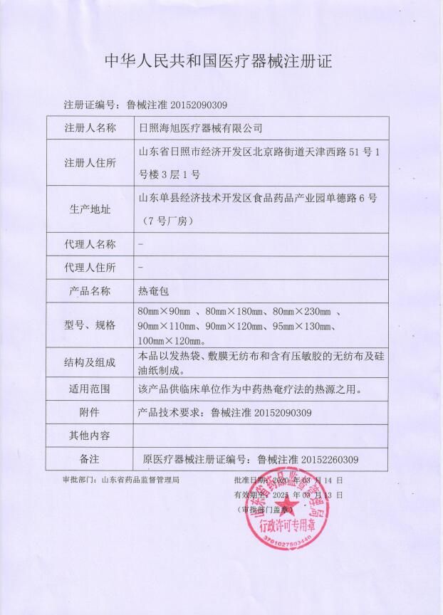 | 使用方法 | 确认包装无破损后,打开包装,取出热奄包,将隔离膜撕去,按照传统中药热奄疗法贴于患处,至不再发热后更换。 |