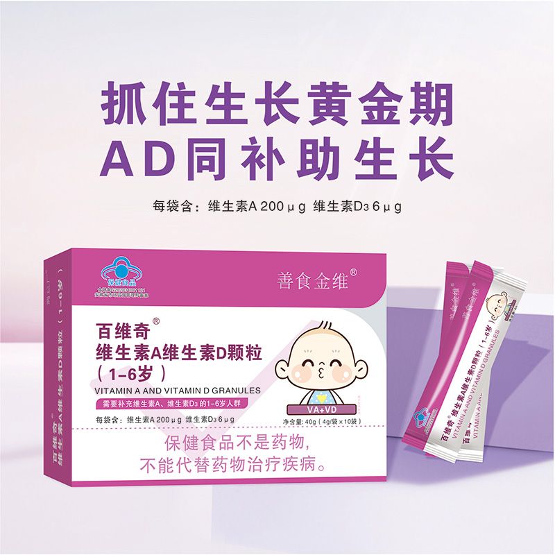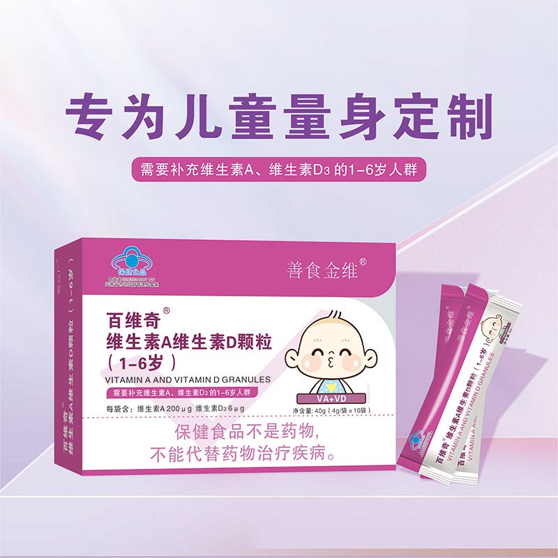 | 产品名称 | 百维奇®维生素A维生素D颗粒(1—6岁) |