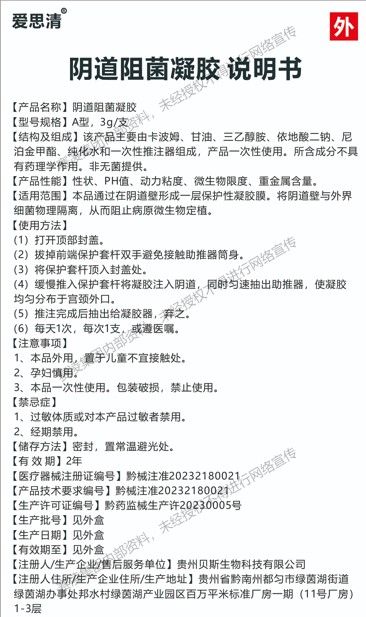 | 产品用途 | 阴道细菌隔离,阻止病原微生物定植 |