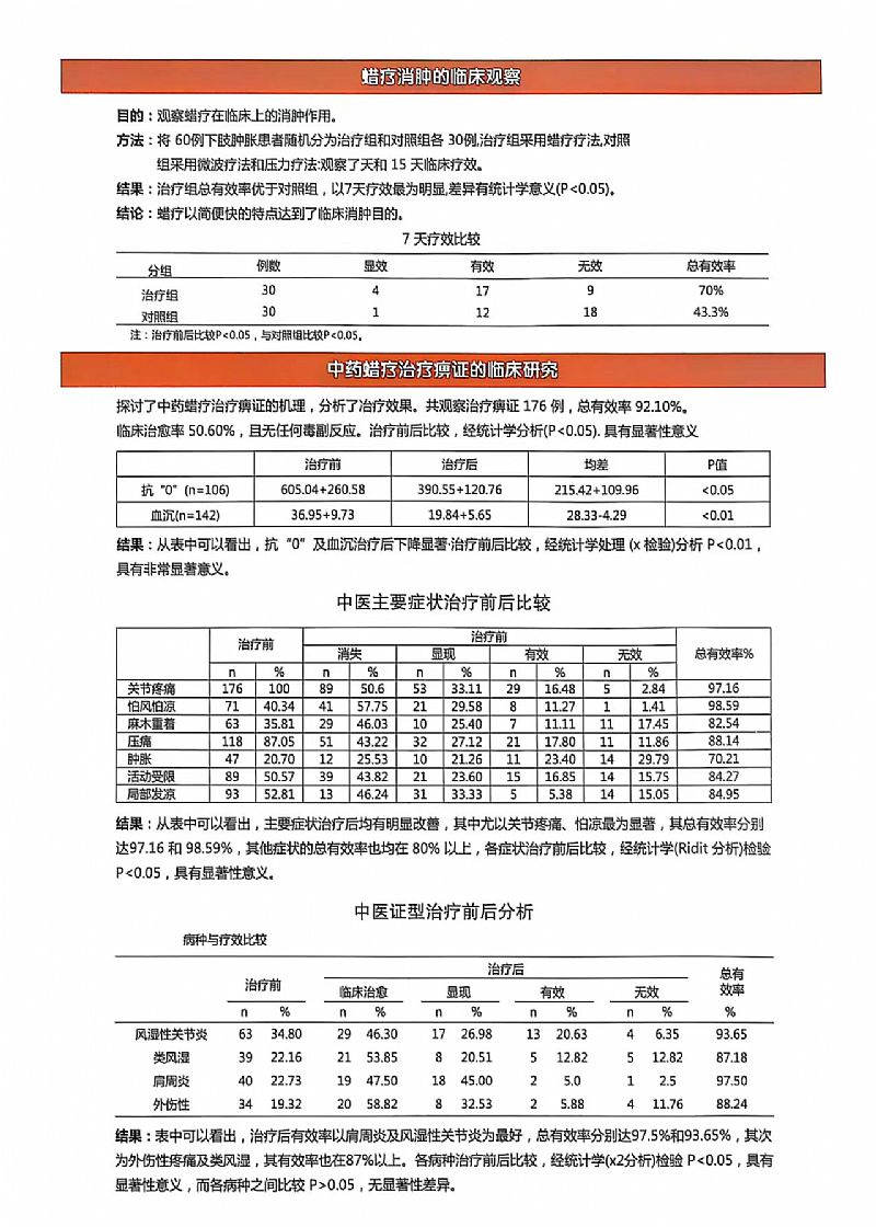 | 补充说明 | 本品为中医理疗科新技术,为临床治疗风寒湿痹症提供了一个新的选择,特别是伴有疼痛的患者,治疗效果明显。 |