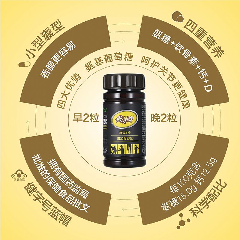 | 产品名称 | 傲骨力®氨糖软骨素维生素D钙片 |