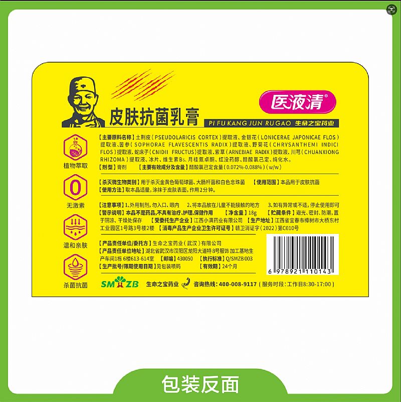 | 产品名称 | 医液清®皮肤抗菌乳膏(成人) |