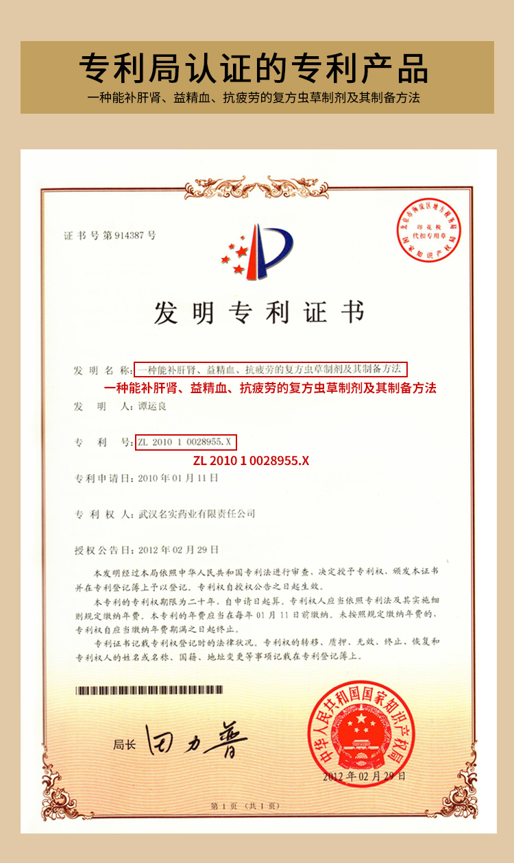 | 主要成分 | [原料]山茱萸、西洋参、韭菜子、蝙蝠蛾拟青霉菌丝体粉 [辅料]无 |