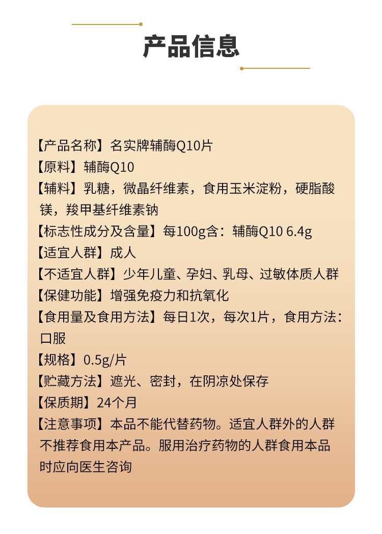 | 产品名称 | 名实牌辅酶Q10片 |