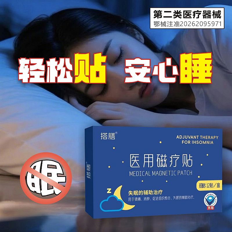 | 补充说明 | 本品为第二类医疗器械医用磁疗贴,通过静磁场和远红外温热效应,作用于人体穴位及局部组织: 1. 调节神经传导,抑制神经异常兴奋,起到镇静安神作用; 2. 改善局部微循环,缓解紧张与疲劳,辅助改善失眠症状; 3. 物理能量结合穴位刺激,帮助缩短入睡时间、减少夜间觉醒,提升睡眠质量。 本品不含药物成分,为物理辅助治疗用品。 医用磁疗贴(失眠贴) 二类医疗器械·物理助眠·无药物依赖 它不靠药物催眠,而是通过静磁场+远红外线, 贴在印堂、安眠穴等位置,温和刺激穴位: - 平复大脑神经兴奋,缓解胡思乱想、入睡难 - 改善头部微循环,放松紧张情绪 - 延长深度睡眠,减少多梦、易醒 纯物理作用,无西药、无激素、无依赖, 帮你轻松入睡,睡得更沉、更安稳。 |