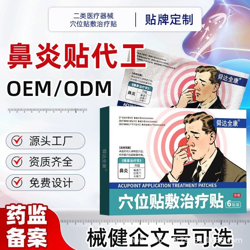 | 产品卖点 | 二类医疗器械鼻炎贴以合规资质、穴位靶向、温和长效为核心,精准触达鼻炎人群全场景需求,可直接用于产品宣传与招商物料。 |