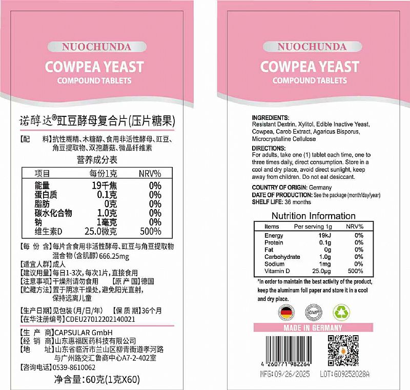 | 产品名称 | 豇豆酵母复合片(压片糖果) |