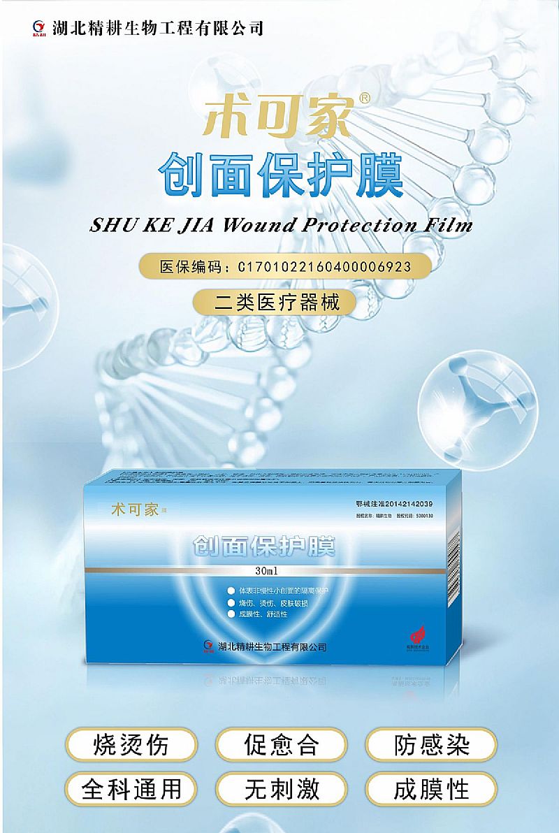 | 产品卖点 | 烧伤、烫伤敷料;直接喷涂于创面,可形成一层透明薄膜,透气、防水、防感染;止血抑菌、保护创面避免二次伤害。 |