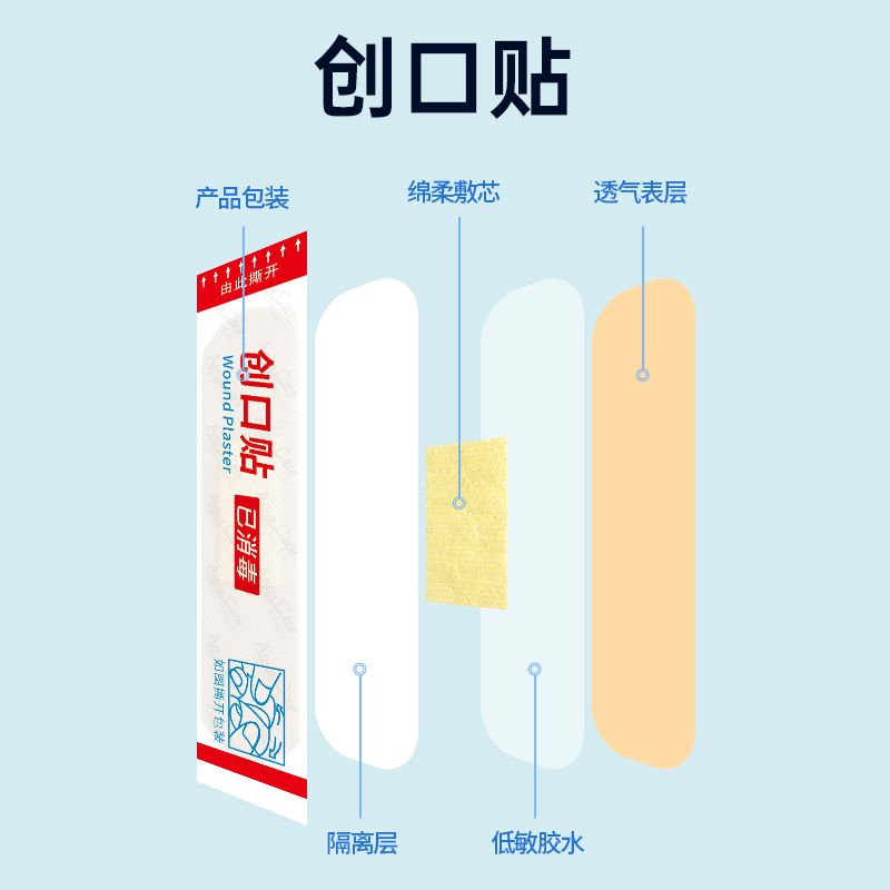 | 产品用途 | 创口贴用于小创口、擦伤、切割伤等浅表创面的急救及临时性包扎 |