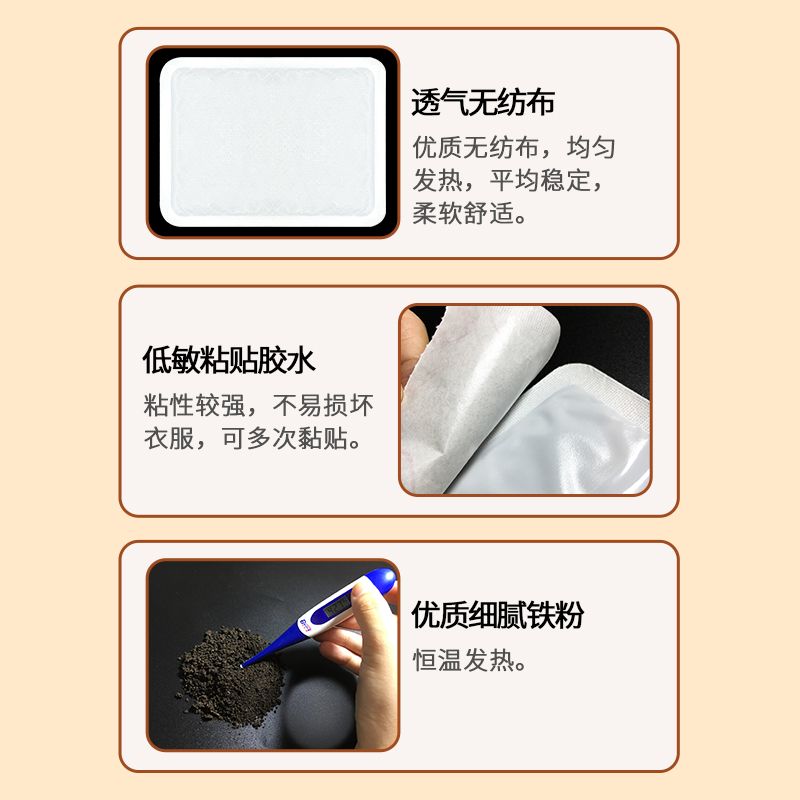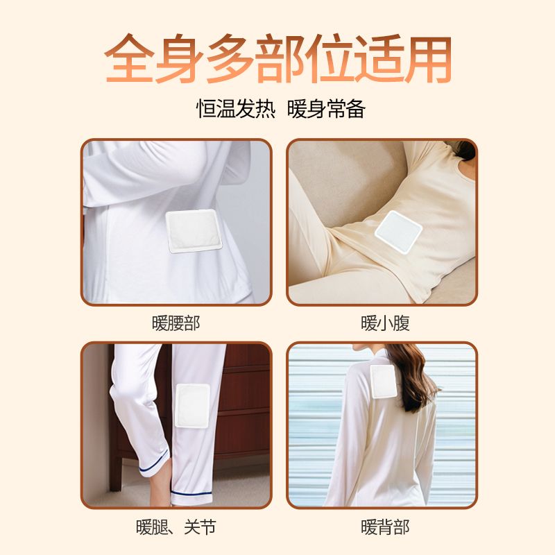 | 产品用途 | 恒温持久发热,舒缓肩颈腰腹酸痛,温润暖护,透气亲肤,居家出行随时暖心养护。热敷贴供人们需要加速血液循环、减轻疼痛、消除疲劳、活血化瘀时一次性使用。也可贴于女性使用者腹部,减轻局部部位疼痛。热敷贴贴在内衣上使用,使用时不与皮肤接触。 |