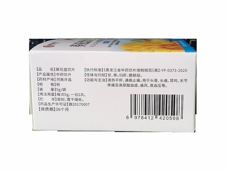 | 补充说明 | 葵花盘饮片是一种具有多重功效的中药饮片,尤其适合肝阳上亢、气血瘀滞相关病症的辅助治疗。 |