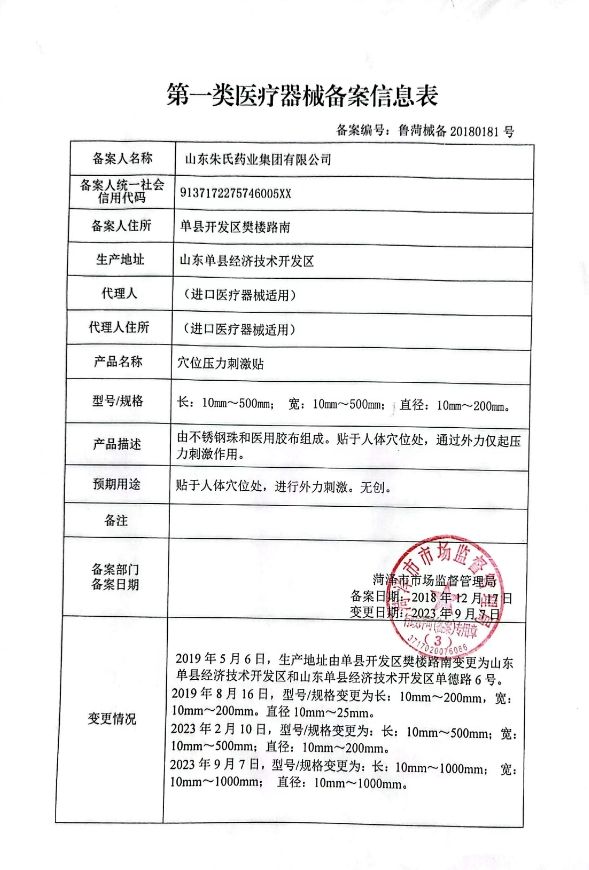 | 主要成分 | 由不锈钢珠和医用胶布组成。贴于人体穴位处,通过外力仅起压力刺激作用 |
